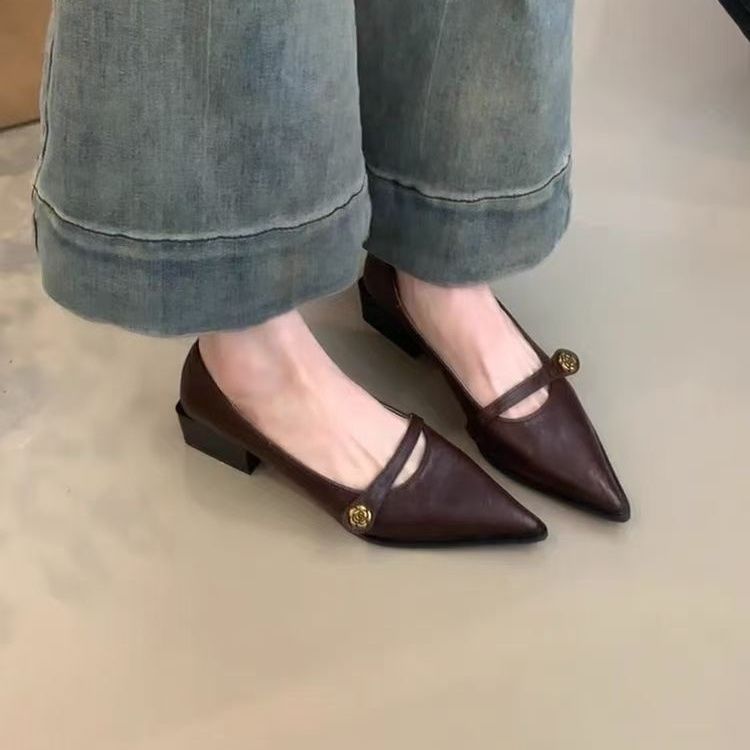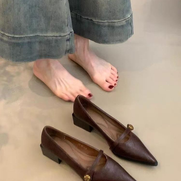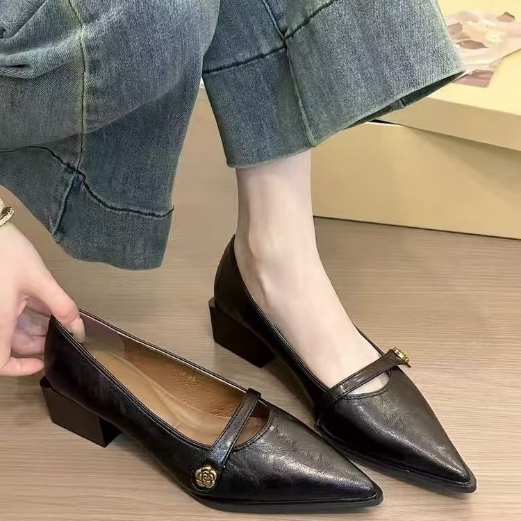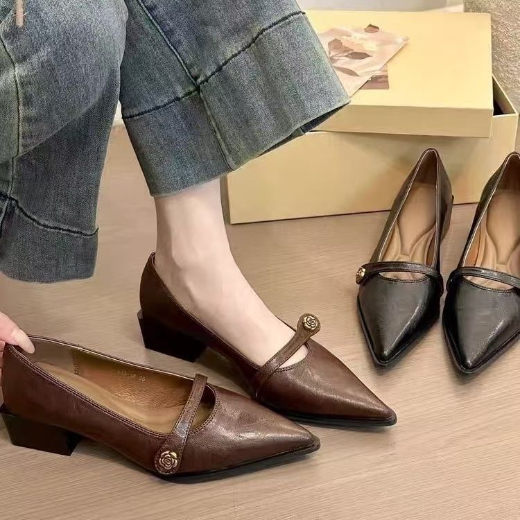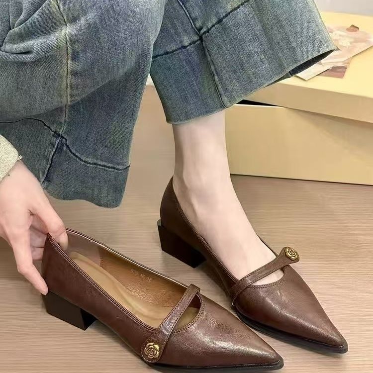 Versatile Fashion Retro Low-cut High Heels Women Camellia